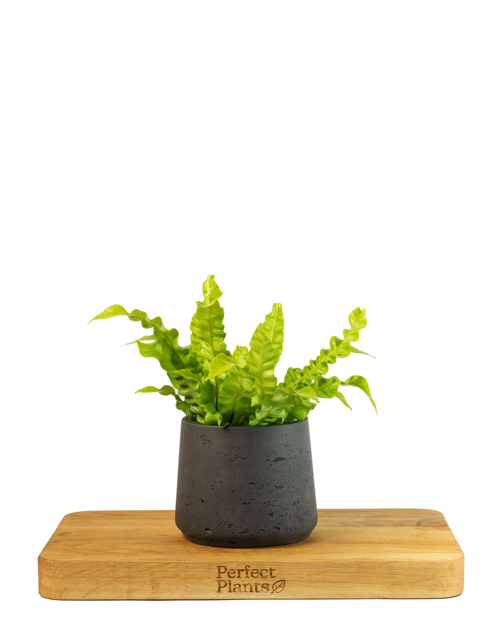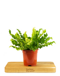 This variety of the Bird's nest fern has distinctive shuttlecocks of yellow green sword shaped fronds with ruffled edges which gives the fern a structural appearance.