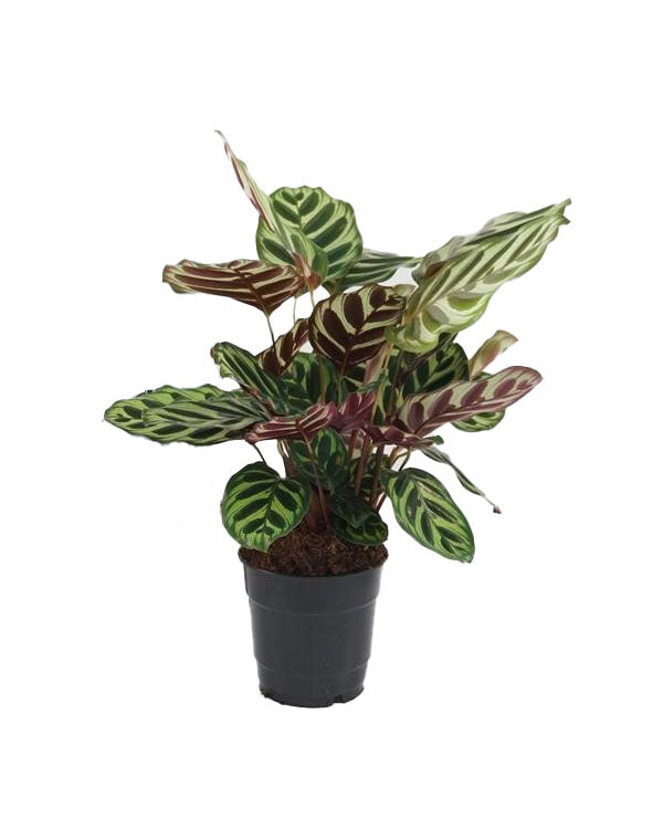 A crowd pleaser that will not fail to impress with their showy foliage, like the peacock itself. Calathea ‘Makoyana’ is a stunning plant with pale green leaves painted with oblong patches and fine lines of dark green along its veins. The underside of the leaf has a similar pattern but is a dark purple in colour.