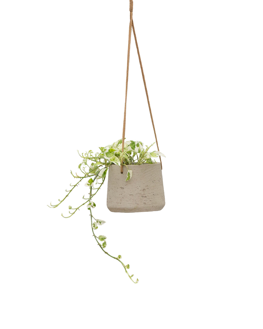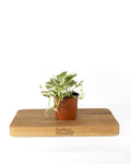 Njoy’ is a variety of Devil’s Ivy characterised by its its variegated green and cream coloured foliage. This is a fast growing plant with a trailing stem that can be trained against a mosspole, placed on a shelf, or grown in a hanging basket. It is a a great plant for beginners as it is forgiving of neglect. It is also good for your health as it removes toxins from the air.