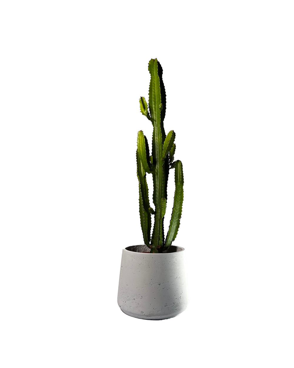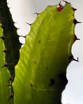 Euphorbia acruensis makes an impressive statement house plant because of its architectural beauty, together with the size! This plant is a member of the succulent cactus family. The acruensis has multiple slender ribbed stems that grow like a chandelier and has oval leaves. When placed indoors, your Euphorbia Acrurensis can grow up to 5-8 feet tall with proper care.