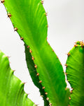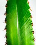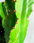 Euphorbia ingens is a succulent that appears like a cactus. Also known as the cowboy cactus, it grows in a candelabra type shape with a central green vertical trunk and then branches that grow parallel. Each brand has 4-5 vertical ridges with small sharp spines along them. These larges cacti make for impressive features in any conservatory or bright room.