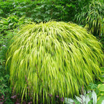 Hakonechloa Aureola, commonly known as Golden Japanese Forest Grass, is a stunning ornamental grass celebrated for its elegant beauty and vibrant foliage. Its cascading, arching leaves create a graceful and flowing effect in garden landscapes. The standout feature of Hakonechloa Aureola is its striking variegated foliage, which showcases hues of golden-yellow with green stripes or markings.