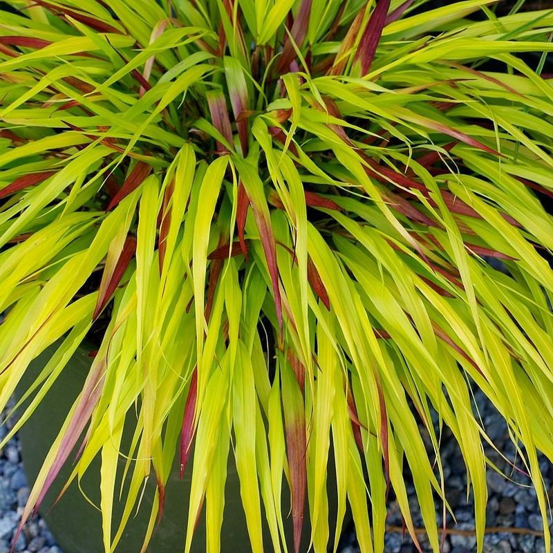 Hakonechloa Sunflare is a captivating ornamental grass that adds a burst of sunshine to any garden or landscape. With its graceful, cascading growth habit, this cultivar creates a mesmerizing display of color and texture. The foliage of Hakonechloa Sunflare begins with a vibrant golden hue, reminiscent of the warm glow of the sun, which intensifies as the season progresses