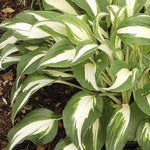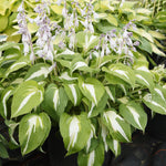 Hosta Night Before Christmas offers striking variegated foliage with deep green leaves and a bright white central stripe. This shade-loving perennial thrives in borders, containers, and woodland gardens. Slug-resistant and easy to maintain, it returns yearly with lush, elegant foliage. Lavender flowers bloom in summer, enhancing its beauty. Supplied in a 17cm pot, ready to plant.