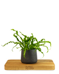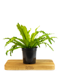 The Japanese nest fern is a slow growing evergreen with a nest of bright green glossy fronds with curly new growth emerging from the centre. The Osaka variety has longer narrow glossy leaves.