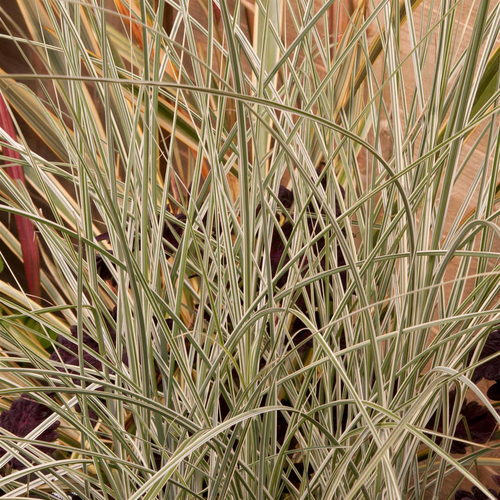 Miscanthus are wonderful ornamental grasses that provide interest throughout the year and often look their best when other plants in the garden are fading. Fountains of foliage grow up in early summer and bear plumes of white or pink flowers in late summer. later in the year these fade into shades of biscuity brown. Miscanthus sinensis 'Morning Light' is named for its attractive stems. It has gracefully arching, finely textured light foliage. The cream margins on the grass blades glisten in the morning light.