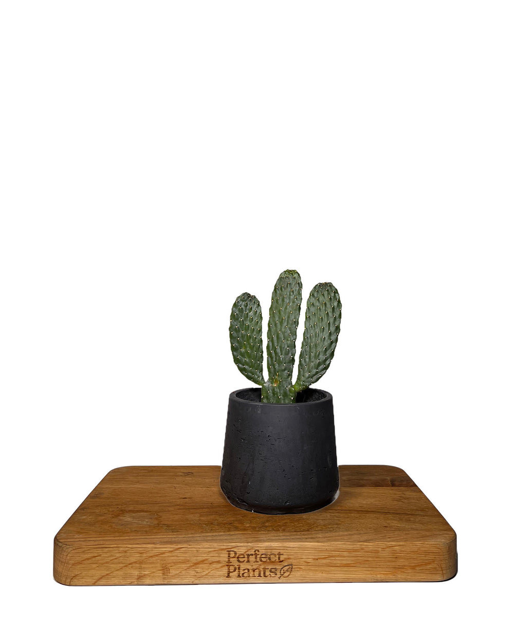 A flat-padded cactus house plant that is called Opuntia rubescens 'Consolea'. This cactus is part of the prickly pear family. Its unusual shape with flattened pads, from which small spines grow will make it a striking addition to any cactus collection..