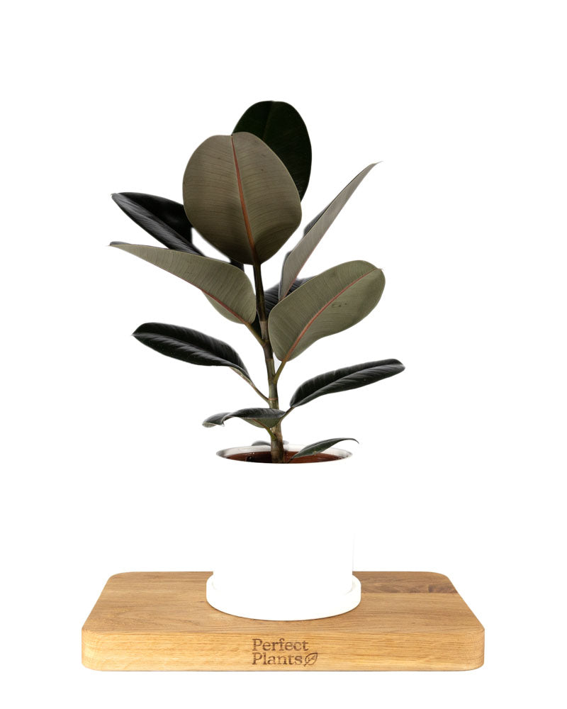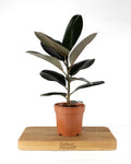 Ficus Elastica ‘Abidjan’ add warmth to any room with large foliage in rich tones of bronze and burgundy, with a deep green base. It requires little maintenance and is considered one of the best air purifying plants available.