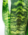 Sanseviera Black Coral has leaves which are dark green, verging on black contrasting with grey-green horizontal bands.