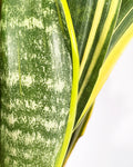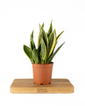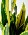 Sanseviera Golden Flame has sworld like leaves protruding out from the central rosette. With a golden yellow centre and contrasting green and silver leaves.