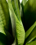 Also know as the Silver Snake plant, Sansievera Moonshine has pale silver/green leaves with dark green brands and edges.